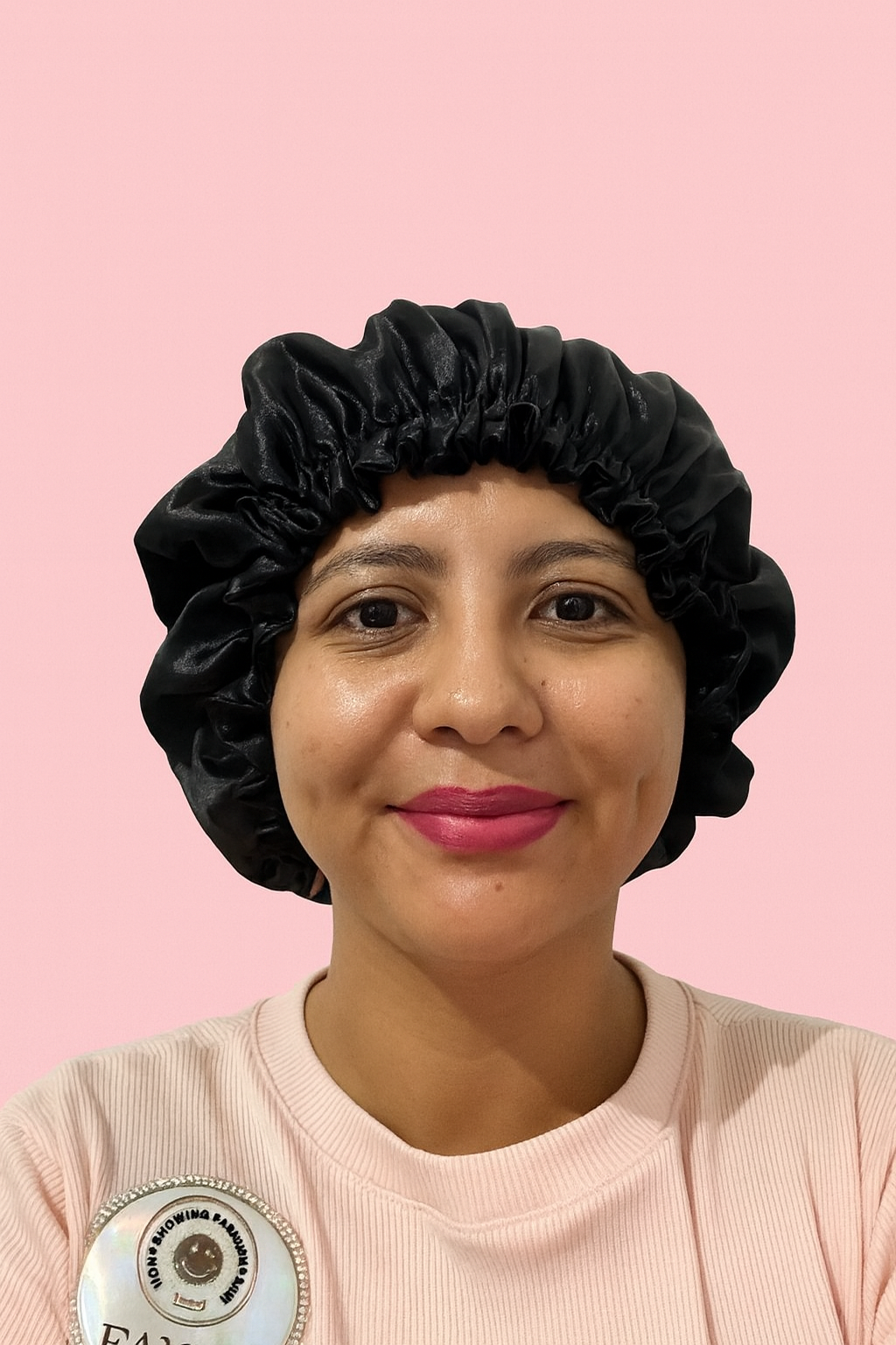Tamaño mediano. 💎 Beneficios del satín en el cabello 💆🏽♀️✨ Reduce el frizz y el encrespamiento ✨🙌 El satín tiene una superficie suave que evita la fricción 💫, así el cabello no se esponja ni se desordena mientras duermes o lo recoges 😴💖. Conserva la hidratación natural 💧💎 A diferencia del algodón, el satín no absorbe la humedad del cabello 😍🌿, ayudando a que tus crespos y rizos se mantengan suaves, definidos y brillantes ✨💁🏽♀️. Evita el quiebre y las puntas abiertas ✂️❌ Menos fricción = menos tirones 🙅🏽♀️✨, lo que reduce la rotura del cabello, especialmente en peinados recogidos o al dormir 😌💤. Protege la definición de rizos y ondas 🔄💖 Usar gorros, fundas o moñas de satín ayuda a que los rizos duren más tiempo definidos ⏳✨ y no pierdan su forma natural. Ideal para dormir y para el día a día 🌙🌸 Perfecto en gorros y fundas para dormir 😴💗, y en moñas o scrunchies para el día 🌞✨ sin maltratar el cabello. Aporta brillo y suavidad ✨😍 El satín permite que la cutícula del cabello permanezca más sellada 💎, logrando un cabello más brillante, sedoso y saludable 🌟💁🏽♀️. 💕 En resumen 👉 El satín cuida, protege y embellece tu cabello 🥰✨ 👉 Es un básico infaltable para una rutina capilar consciente 🌿